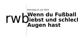 Ich liebe das öffentlich rechtliche TV-Programm. Immer wieder bekommt man dort Perlen zu sehen, die im Matsch des Restprogrammes unter gehen würden. Da ist zum einen das unaufdringliche Senderlogo. In meinem Fall das des WDR. Einfach nur ein Schriftzug. Keine Applikationen, keine Logos, keine Grafiken, unaufdringlich.